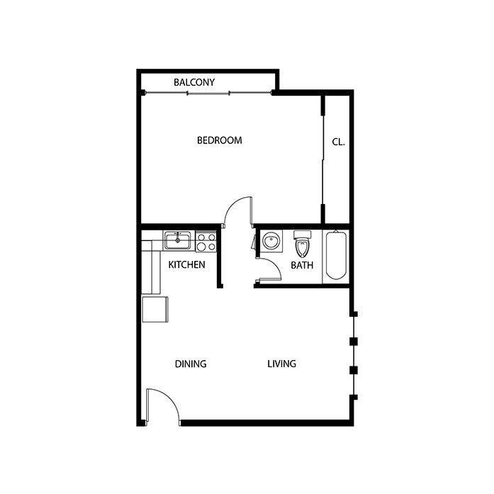 Beds: 1, Baths: 1, SQFT: 624